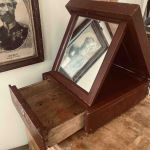 Antik rakspegel med låda. Mycket charmig. Nyckel saknas.