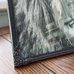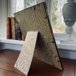 Jättefin metallram med buktat glas.