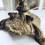 Jättefin bordslampa i bronserad malm, med opalvitt glas. Ny sladd med strömbrytare.