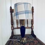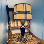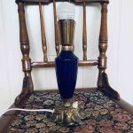 Fin bordslampa i metall och keramik. Härlig mörkblå glaserad färg!