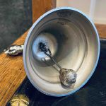 Bordspingla med inskription: "För trogen tjänst, 19 1/2 38". (1938).