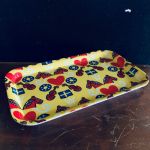 Bricka med motiv av svenska flaggan, dalahästar, fioler etc. Finns 4 styck - priset är 35 kr /styck.
