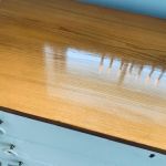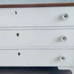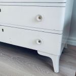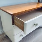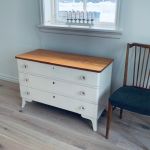 Byrå 60-tal, vitmålad med betsad skiva (ask?).