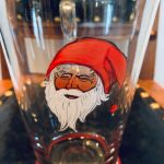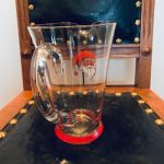 Mycket fin glaskanna med jultomtemotiv. Så fin att hälla upp musten i på jul!