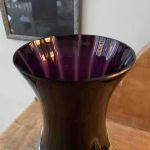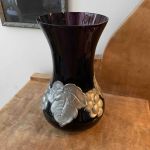 Glasvas mörklila med tenndekor, ca 40-tal.