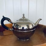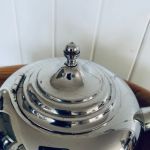 En sådan underbar gammal kaffekanna i förnicklad metall (troligen). Siltet härligt trähandtag.