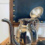 Kanna nysilver med rottinghandtag. Väldigt fin! Varför inte till sommarbuketten?