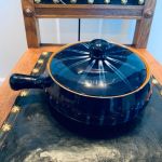 Mått: Diameter ca 20 cm. Diameter med handtag ca 26 cm. Höjd inkl lock ca 12 cm.