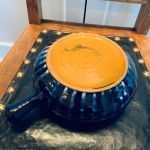 Mycket fin mörkglå glasyr (senapsgul invändigt) med vita ränder.