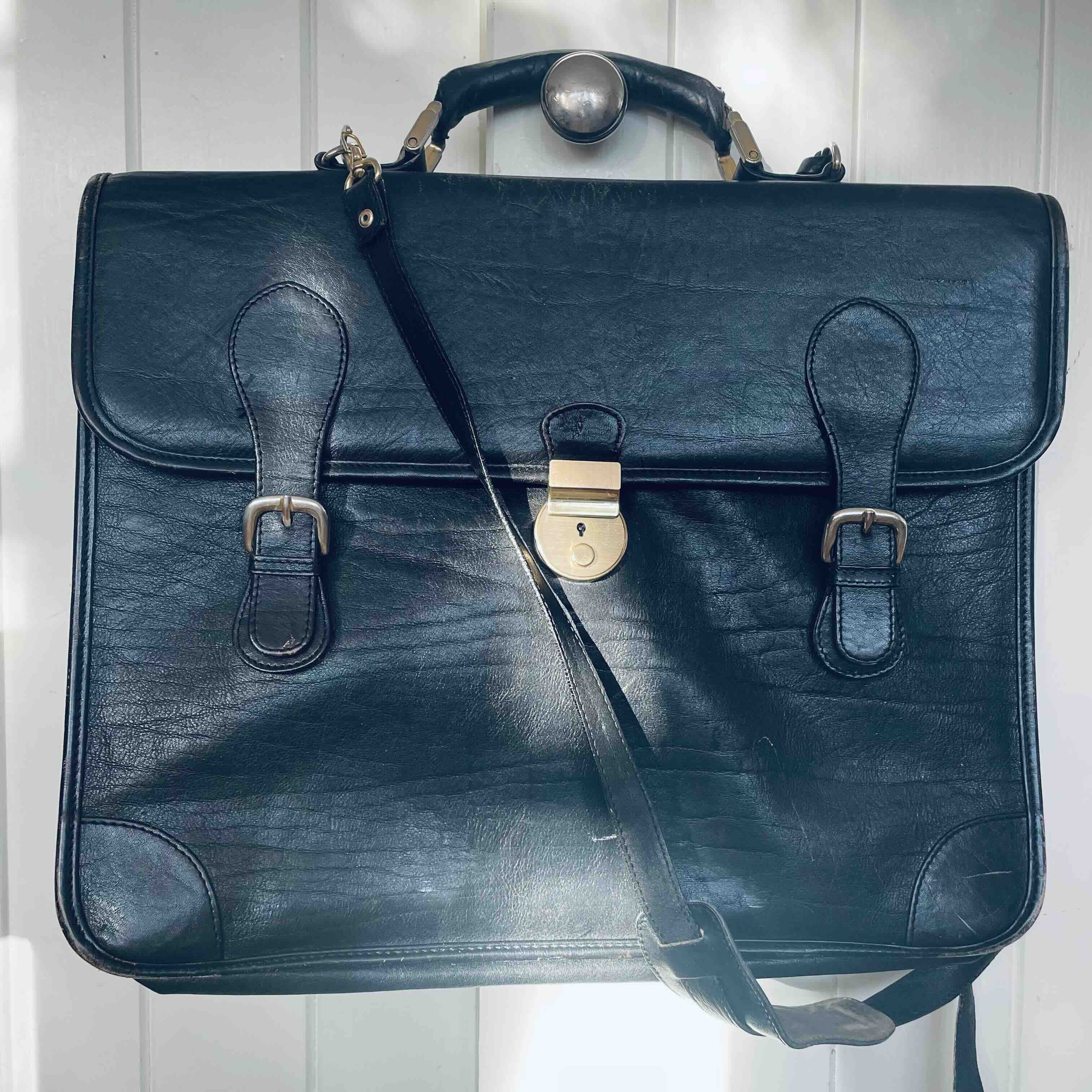 Jättefin vintage läderportfölj med flera fack. Helt ren och fin inuti.