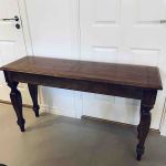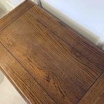 Långsmalt sidobord ekfanér. Fint och stabilt. Märke "Lane", "Made in USA".