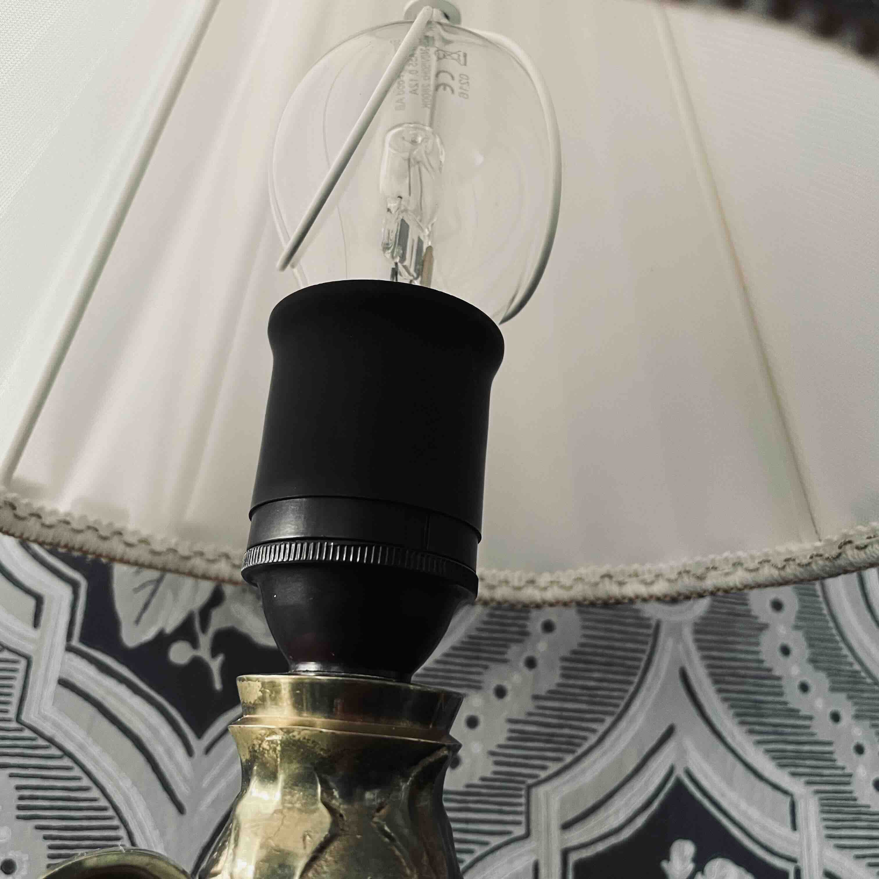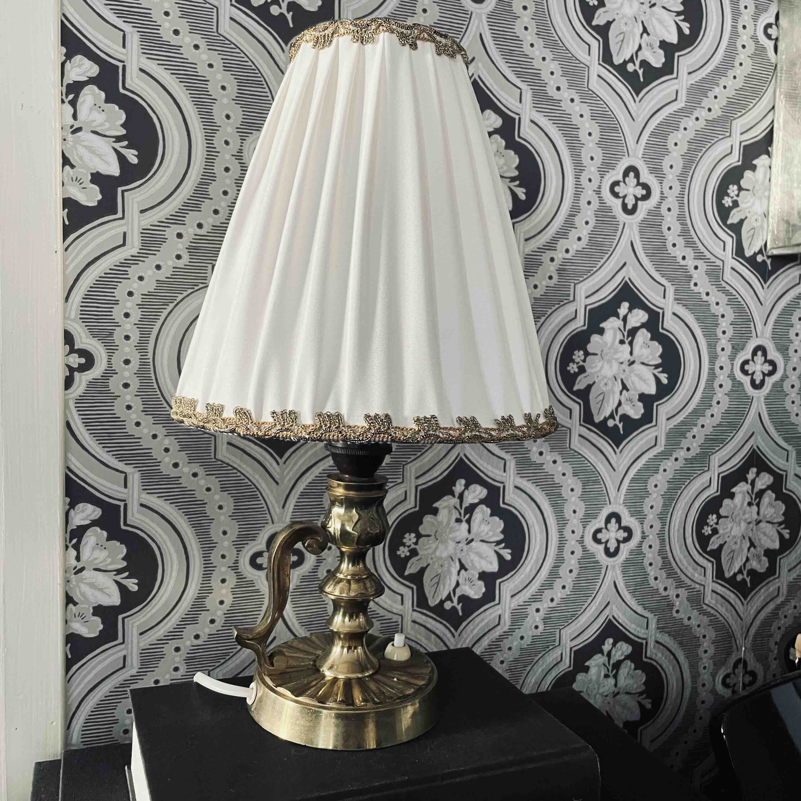 Fin bordslampa i mässing. Vackert handtag och gammeldags lamphållare i brun bakelit.