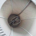 Klofäste längst upp i skärmen. Använd bara moderna LED-lampor som ej blir varma.