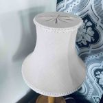 Linneskärm ljusrosa klofäste. Mycket fint skick. Vacker väldigt dov rosa färg med ljust kantband.