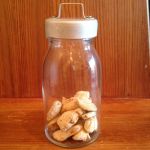 Liten glasburk m metalllock (med plastgrej på insidan för tätslutning). Begagnad men ej antik.