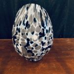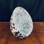 Äggformad ljuslykta modern - av glas. Konsthantverk (tillverkade dock okänd, lappen har trillat av).