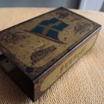 Charmig metallbehållare att sätta tändsticksasken i. Samlarobjekt.