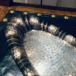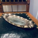 Metallbricka. Ländd ca 29 cm. Bredd ca 12,5 cm.