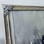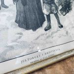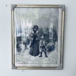 Stor rejäl metallram, med äldre tidningsmotiv från Svenska Familjejournalen Svea från 1890: "Jultorget i Kristiania".