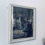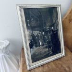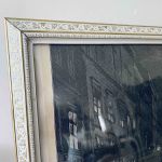 Stor rejäl metallram, med äldre tidningsmotiv från Svenska Familjejournalen Svea från 1890: "Vesterlånggatan vid Jultid".
