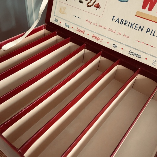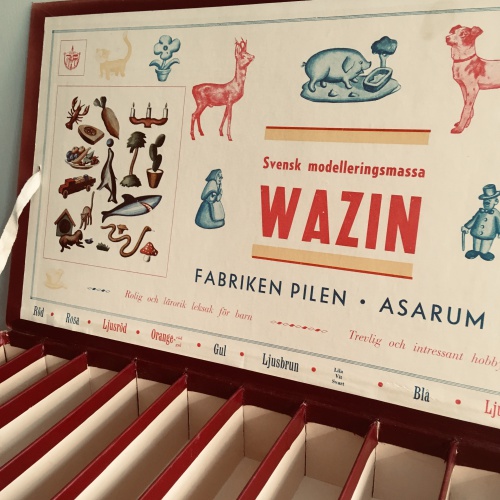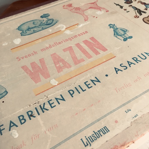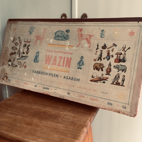 En sån charmig originalkartong från Fabriken Pilen i Asarum. Kartongen har ursprungligen innehållit modelleringsmassa.