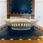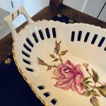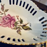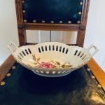 Oval skål genombruten porslin. Handmålad. "Guld"-detaljer. Så dekorativ! Fin för frukten, brödet eller godisen.