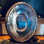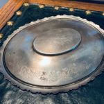Ovalt dekorerat fat i nysilver. Så vackert! Sätt t.ex. ett blockljus mitt på, kommer att reflektera sig jättefint i den blanka ytan.