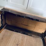 Pall i nyrokokostil, med broderad sits. Sadelgjord.