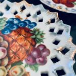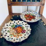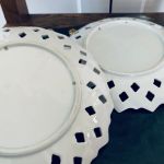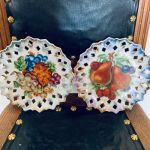 Paret upphängbara fat (hål baktill finns för upphäng). Såå söta! Vacket genombrutet porslin.