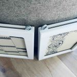 Paret vita träramar. Man sticker i valfritt motiv uppifrån och hänger upp på metallöglorna.