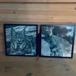Paret kvadratiska ramar m djurmotiv (urklipp från boken "Vilda Djur" från 1958).