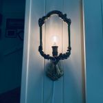 Paret jättefina lampetter, där du kan välja att ha "ramarna" helt öppna så att glödlamporna syns, eller pyssla ihop ett motiv med hjälp av exempelvis kartong och tyg. På bilden ser du exempel på en enkel kartonglösning med urklipp från ett gammalt häfte, som du får på köpet =).