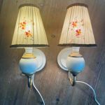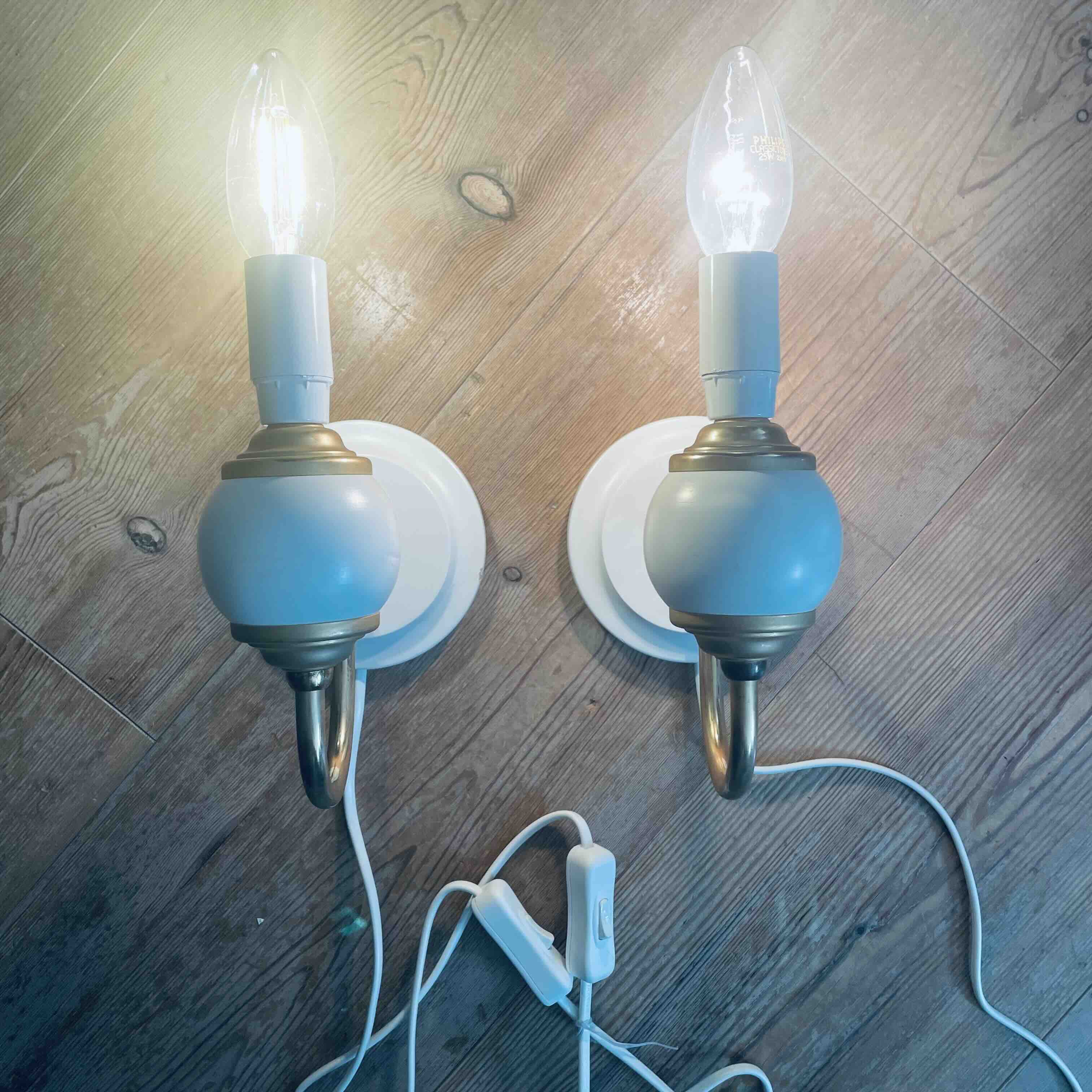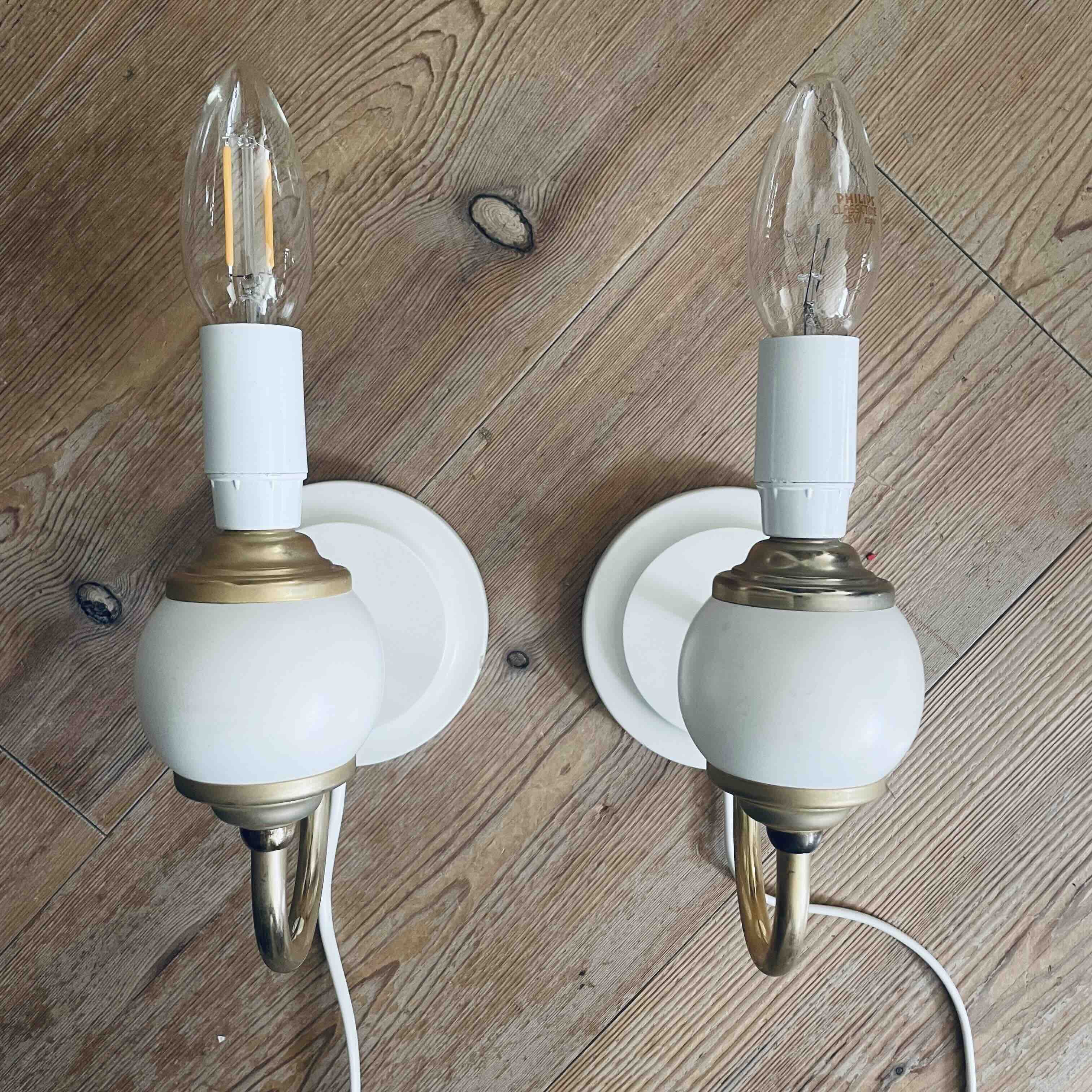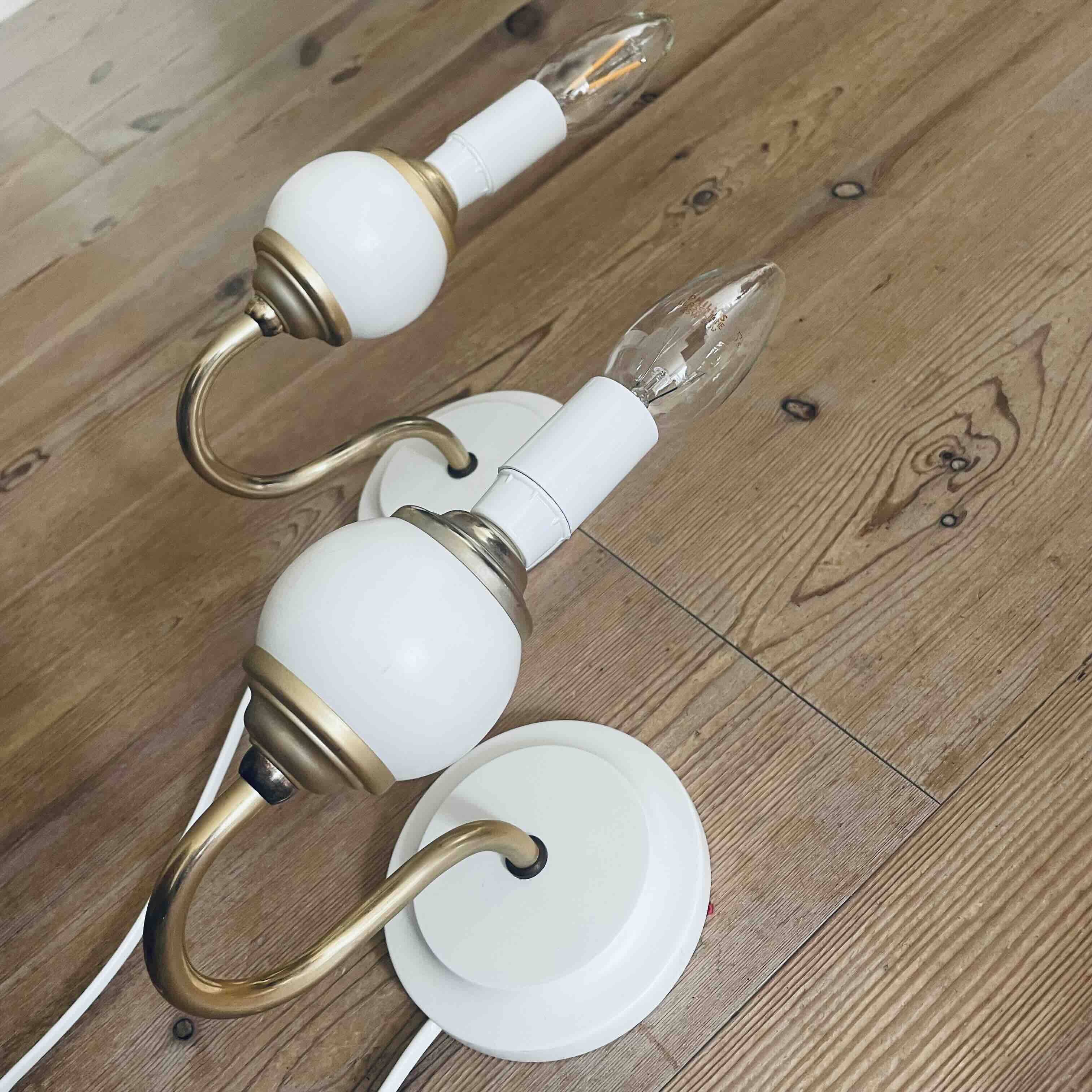 Paret lampetter trä vit guld - ny el (både lamphållare och sladd med strömbrytare).