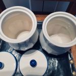 Paret porslinsburkar "Mjöl" och "Salt".
