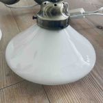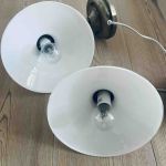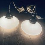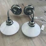 Paret vägglampor / sänglampor i oxidfärg med opalglasfärgade skomakarglas.