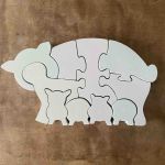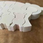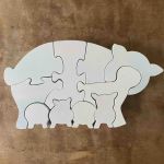 Pusslet är vitsprayat och de tidigare färgerna lyser igenom lite lätt.