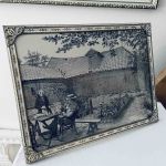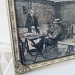 Mycket vacker ram i silvrig metall. Motivet, "Ett kafé i Stockholm - vid Drottninggatan", är ett urklipp ur Svenska Familjejournalen SVEA från 1890.