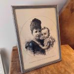 Ram i silvrig metall. Motivet, ”Konung Alphonso af Spanien och hans moder Kristina, regentinnan”, är ett urklipp ur Svenska Familjejournalen SVEA från 1890.