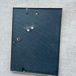Guldig plastram m djurmotiv. Glaset är av glas.