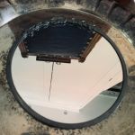 Rund liten spegel med tennram.