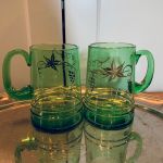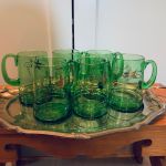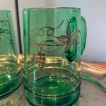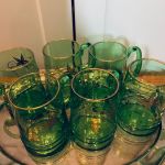 6 st väldigt härliga gröna glassejdlar med underbar "guld"-dekor - troligen från Kosta.
