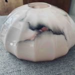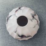 Mått: Diameter: ca 18 cm. Höjd: ca 7,5 cm. Diameter på hålet i toppe: 4,6 cm.