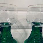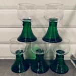 Set med 5 st härliga Remmareglas. Foten är mörkt grön (täckt botten) och kupan är genomskinlig med en fin etsning.