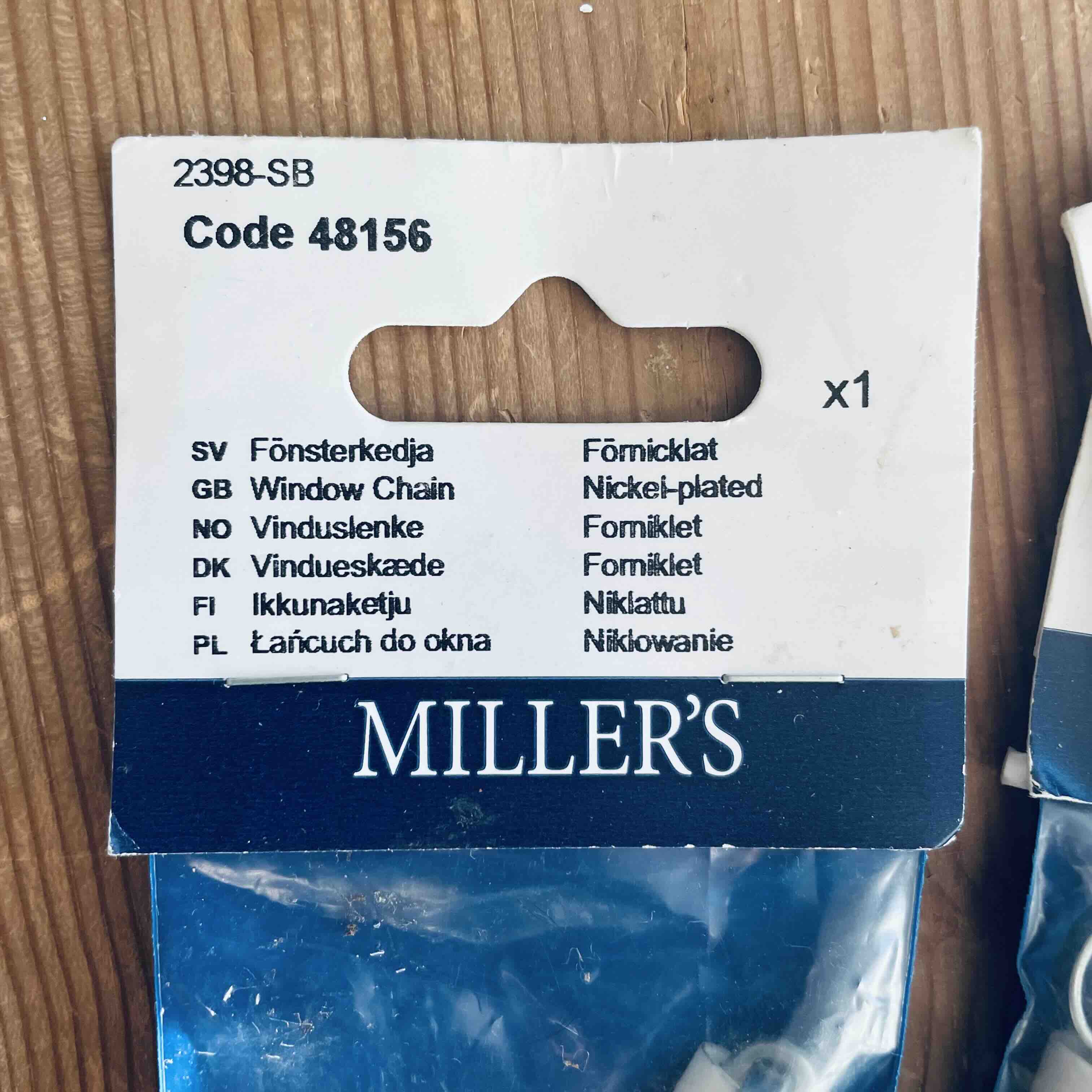 Set med 7 st helt nya fönsterkedjor från Miller's (www.millersbeslag.se). Oöppnade förpackningar.