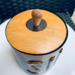 Höjd 14 cm (inklusive lock och handtag). Diameter ca 9,5 cm.