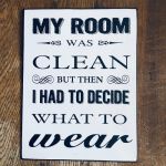 Skylt metall: "My room was clean but then I had to decide what to wear".