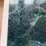 Jättefint soffbord med vacker marmorskiva i mörkgrönt.