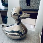 Sparbössa Anka. E P Brass, made in Hong Kong. Med blåa glasögon.