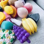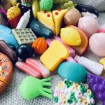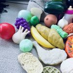 Stort set med lekmat i plast. På första bilden ser du allt samlat. Sedan detaljbilder.