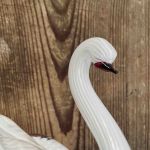 Svanen ligger ner på bilden men står givetvis mycket stabilt på platt yta.